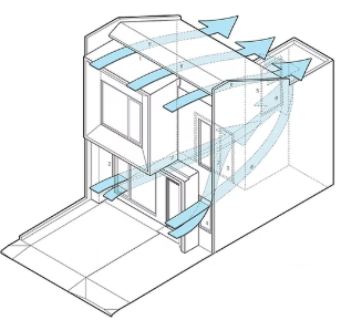 Material dinding sangat berpengaruh terhadap suhu di dalam rumah. Dinding yang mudah menyerap panas akan membuat ruangan terasa gerah.